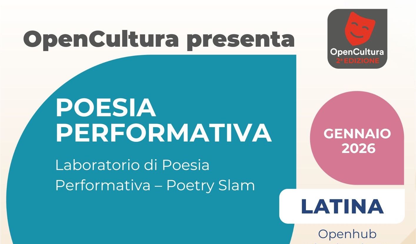 Il Laboratorio di Poesia Performativa – Poetry Slam arriva al Liceo Classico Dante Alighieri di Latina come esperienza gratuita e partecipativa dedicata alle studentesse e agli studenti. All’interno del progetto Open Cultura 2, a cura di Open Hub Lazio – sede di Latina, in collaborazione con il Collettivo Gelatina, il laboratorio propone un percorso che avvicina alla poesia attraverso il corpo, la voce e l’ascolto.