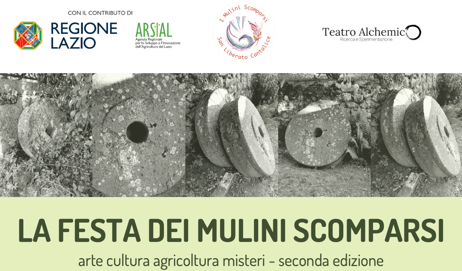 il 5 Agosto 2023 si terrà la seconda edizione della Festa dei mulini scomparsi – arte cultura e agricoltura con lo scopo di valorizzare la cultura rurale nella frazione di San Liberato, Comune di Cantalice, in provincia di Rieti. L’iniziativa è promossa dal Comune di Cantalice e vedrà l’associazione Teatro Alchemico, in collaborazione con COPAGRI Lazio, portare alla luce la memoria collettiva e documentata che rileva la presenza di sette antichi mulini nella frazione di San Liberato a Cantalice, utilizzati un tempo per macinare il grano e successivamente il granturco.