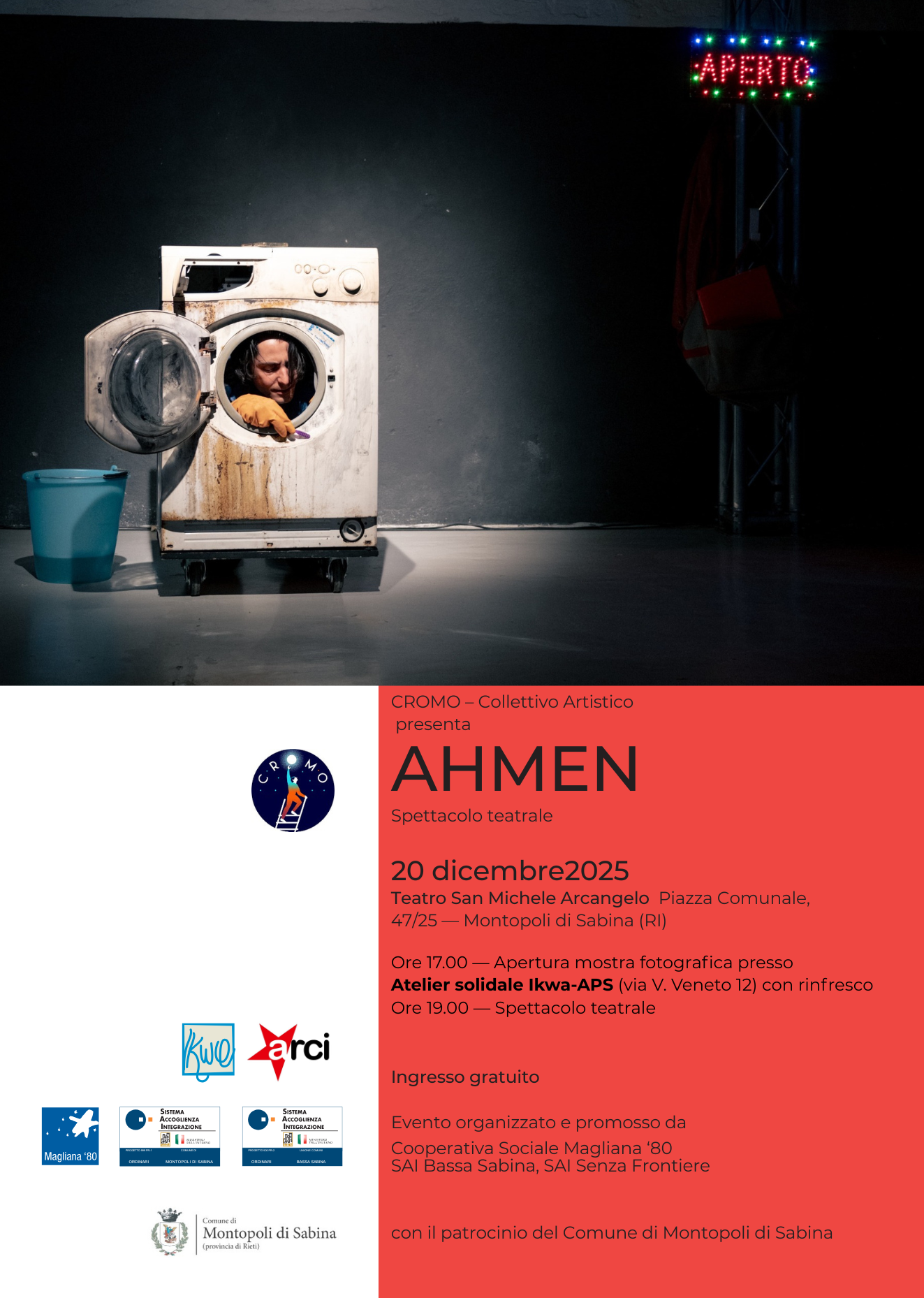 Per l’anno in corso il 20 DICEMBRE 2025 presentano la mostra fotografica e lo spettacolo teatrale “Ahmen”, realizzato da Cromo Collettivo Artistico